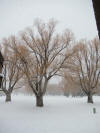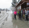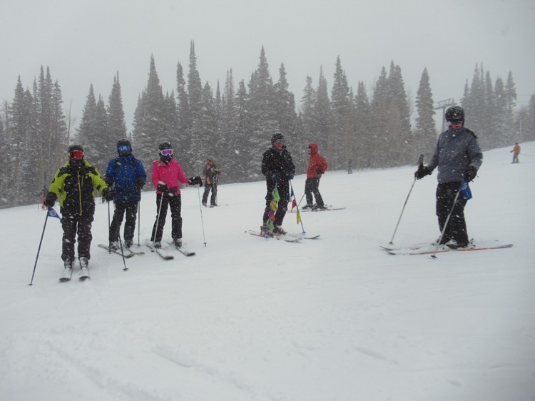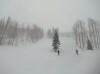 Club members in heavy falling snow preparing to