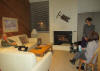 Condo fireplace with couch and chairs |