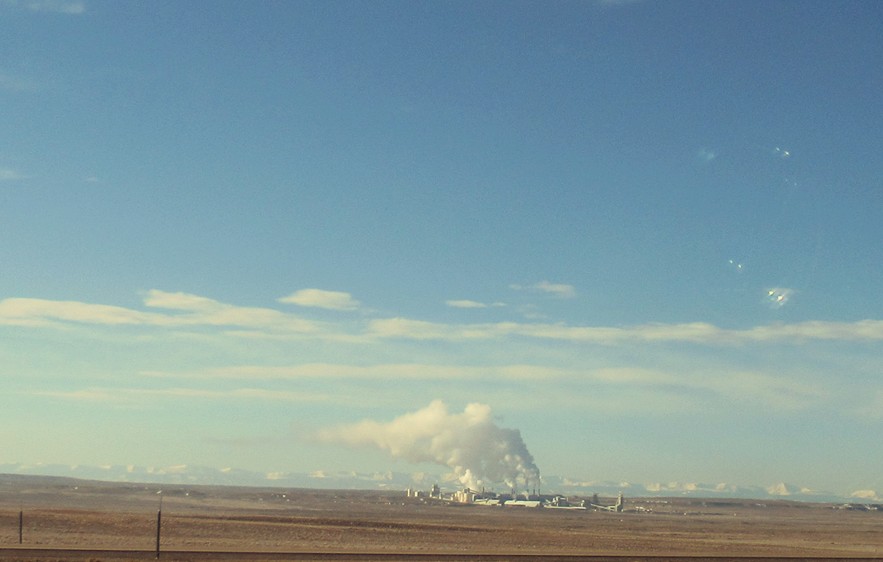 Distant powerplant and mountains