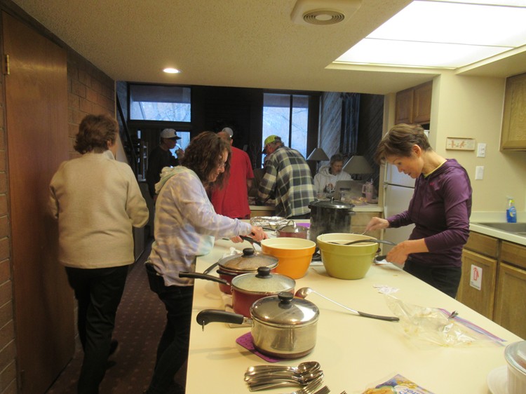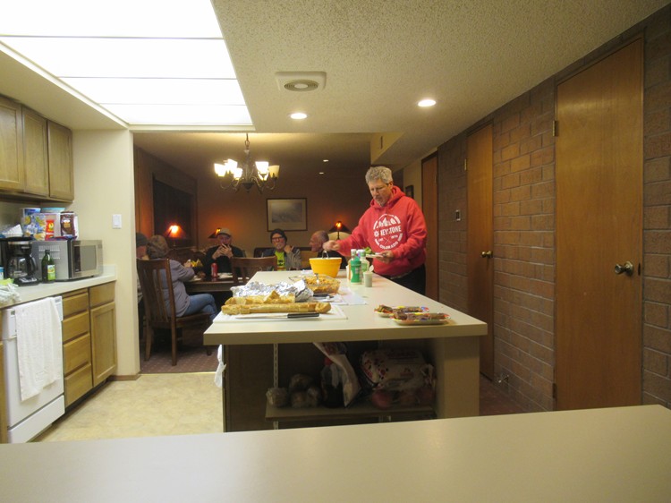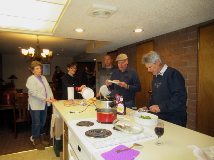 Jeff, Dave, Nancy and Joe getting food |