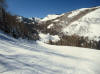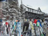 Lift line and restaurant in the narrow valley |