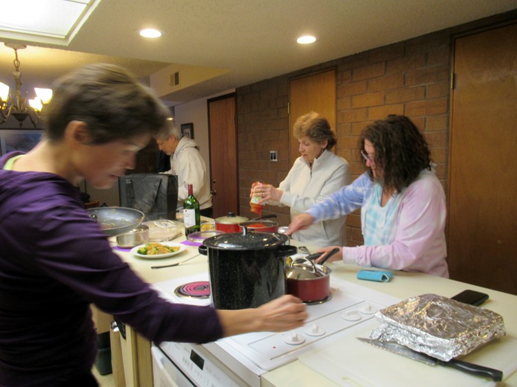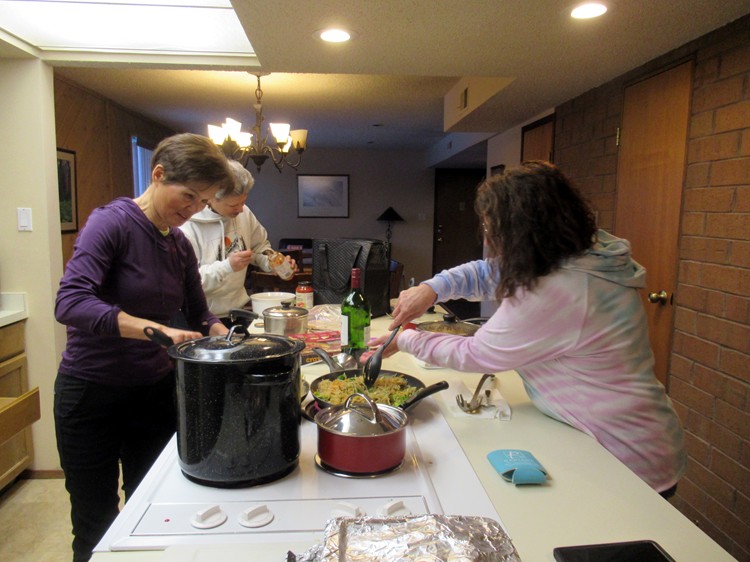 Teri and Dee making breakfast |