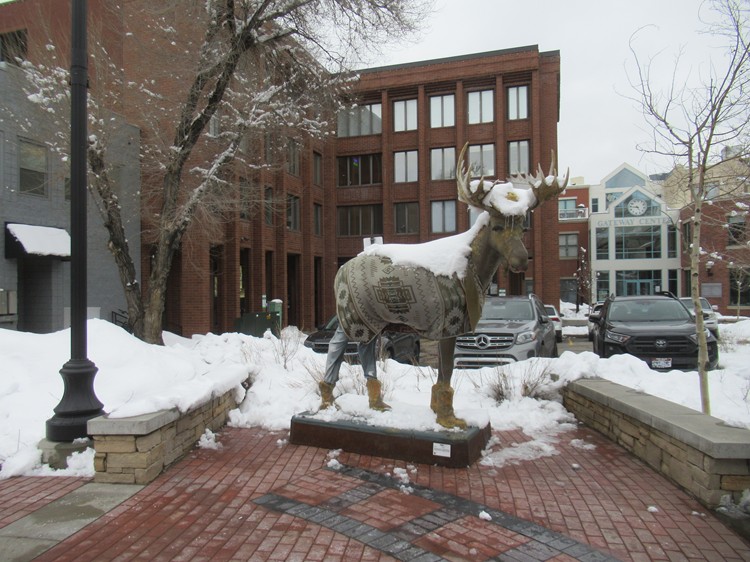 Moose statue with snow |