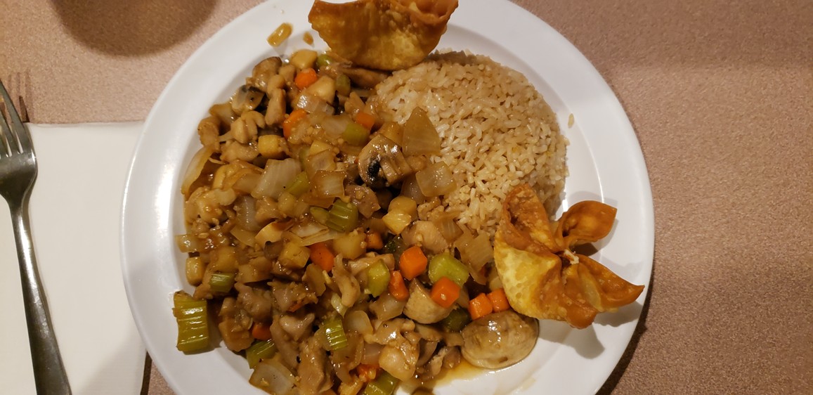 Chicken, vegetables and rice |
