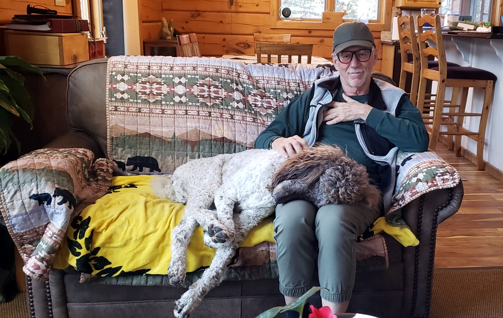 Joe with the large sleepy dog |