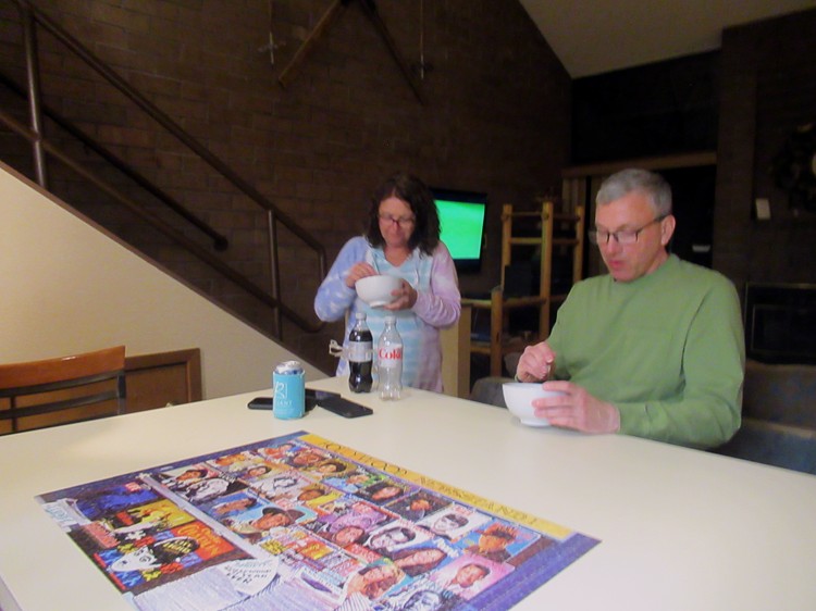 Finishing the puzzle and preparing dinner |