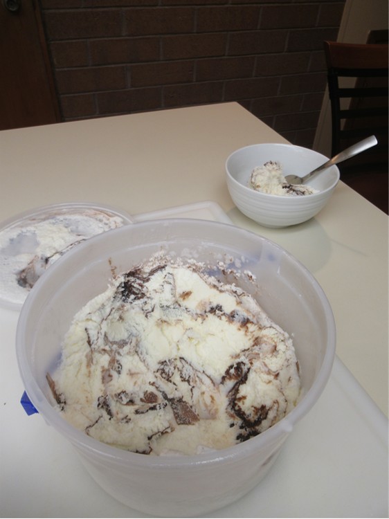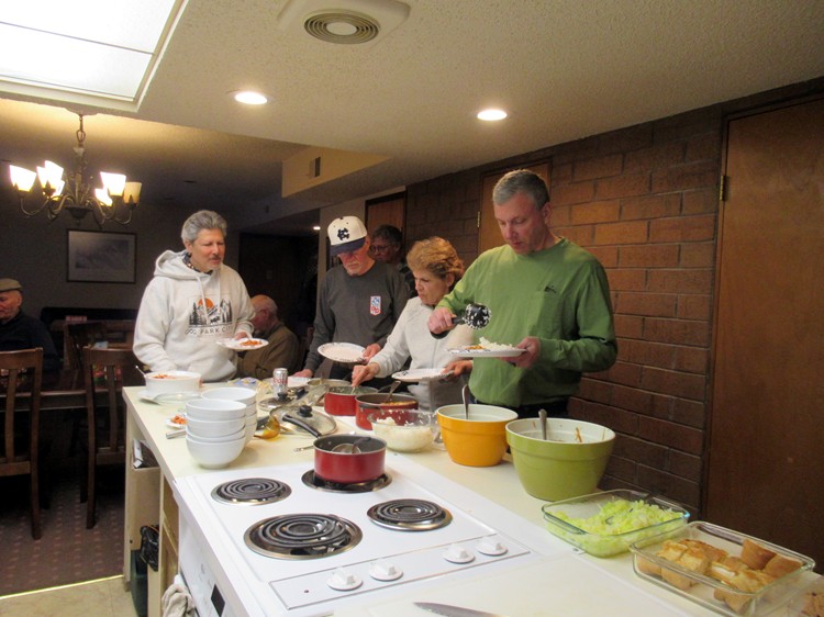 Jeff, Dave, Nancy and Joe getting food |