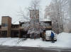 Club members in heavy falling snow preparing to