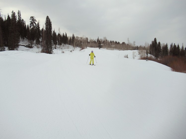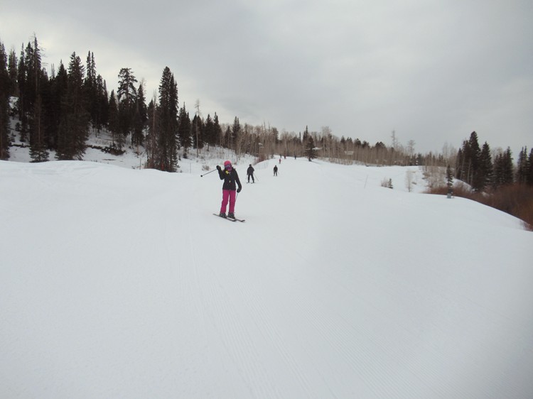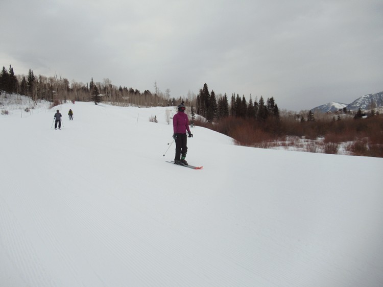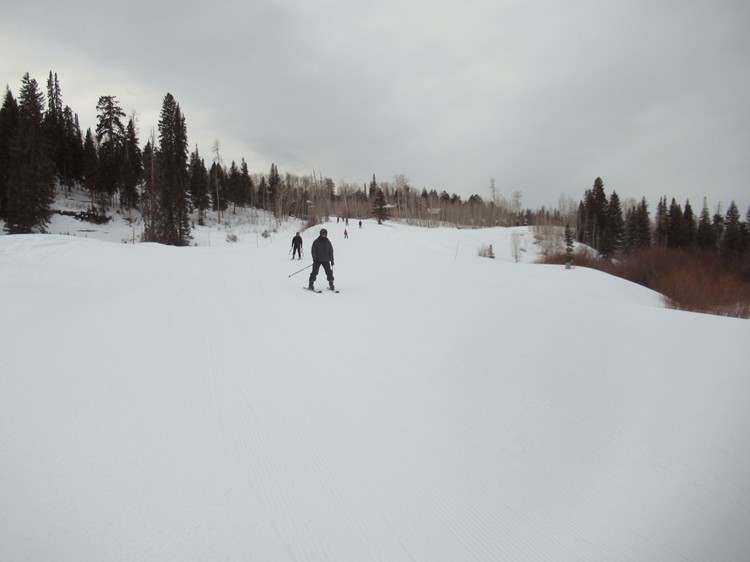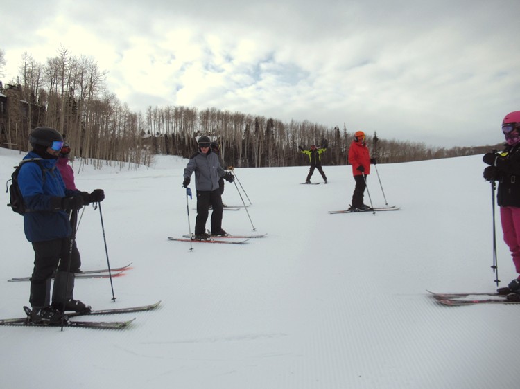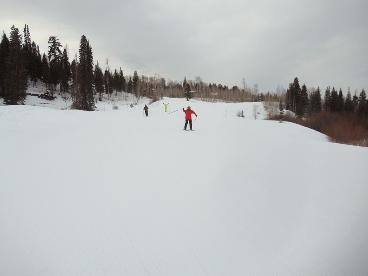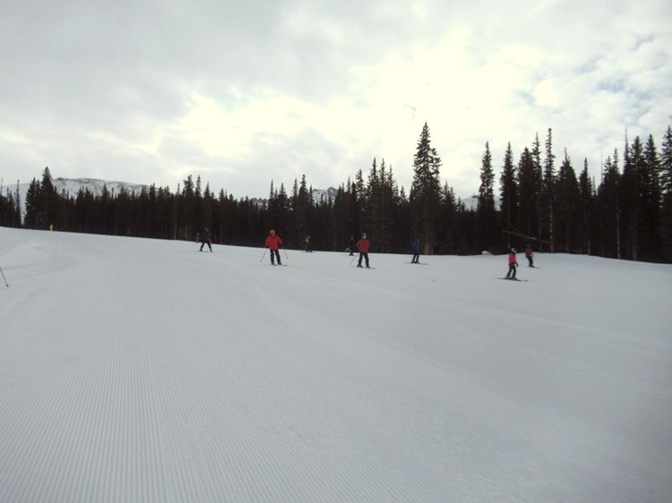 Club skiers on a smooth open slope |