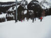 More skiers walking over from the condos |