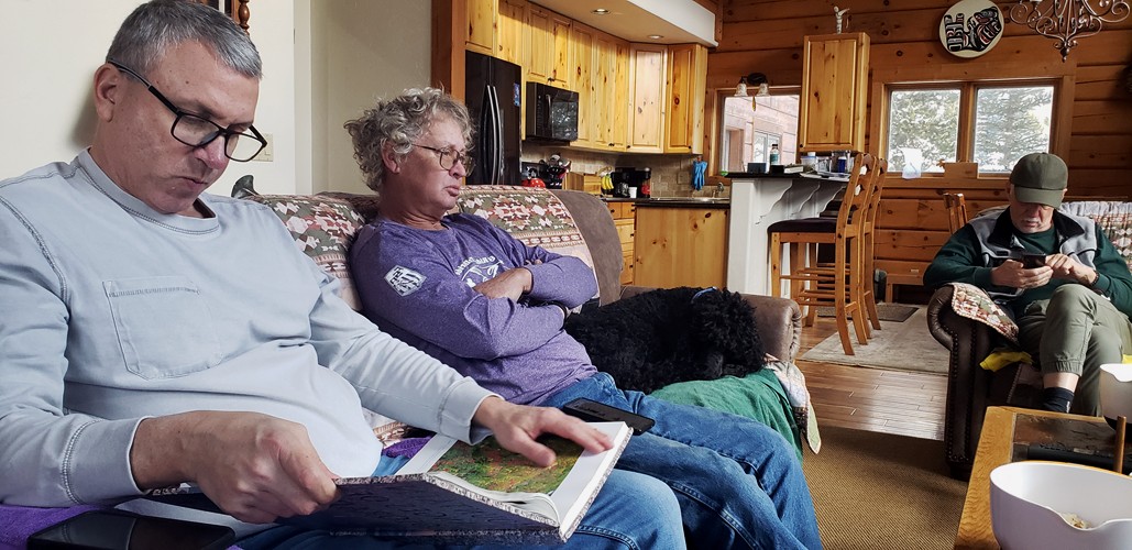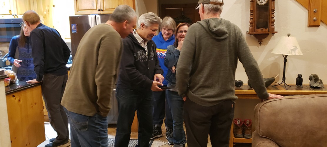 Checking pictures on Jeff's cell phone |