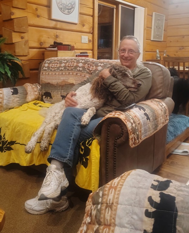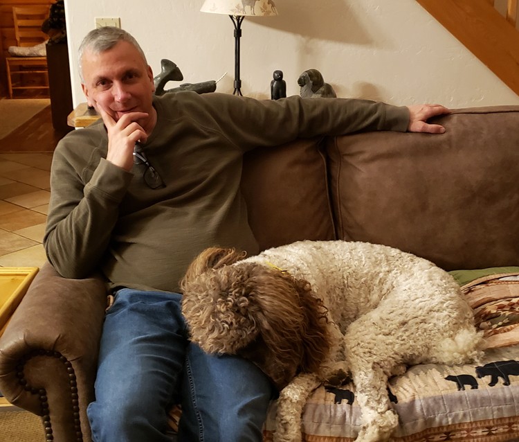 Dave with the large sleepy dog |