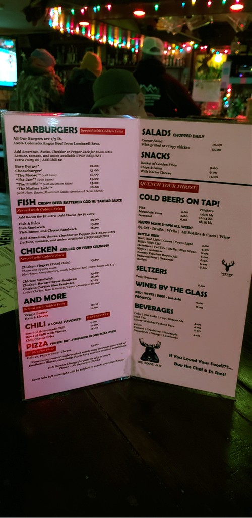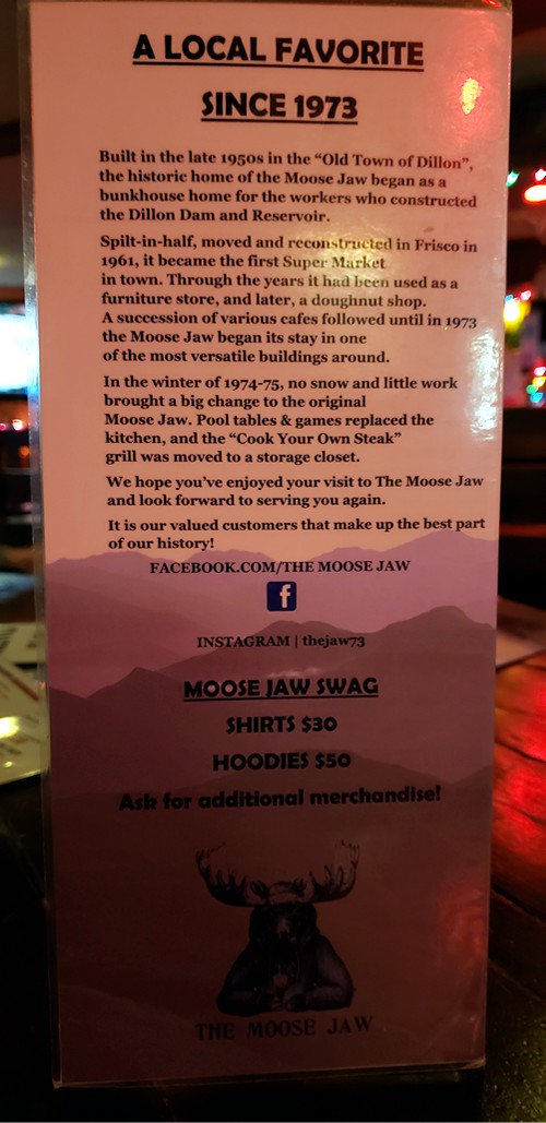 Moose Jaw menu |