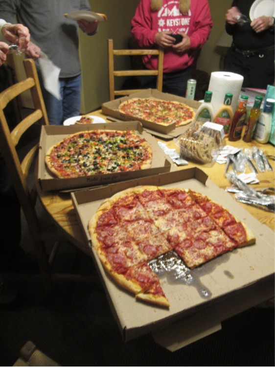 Pizza welcome party at the condo clubhouse |